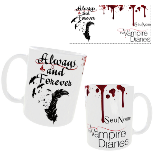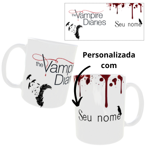 Caneca série The Vampire Diaries Diários de um Vampiro Personalizada com Nome xícara Porcelana 325ml