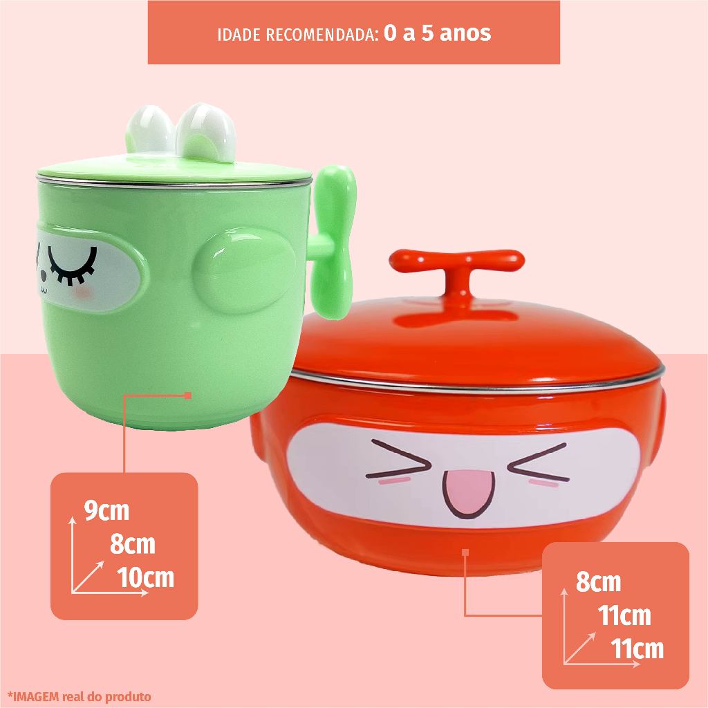 Caneca Tigela Inox Térmica Portátil Aprendizado Infantil Introdução Alimentar Antivazamento
