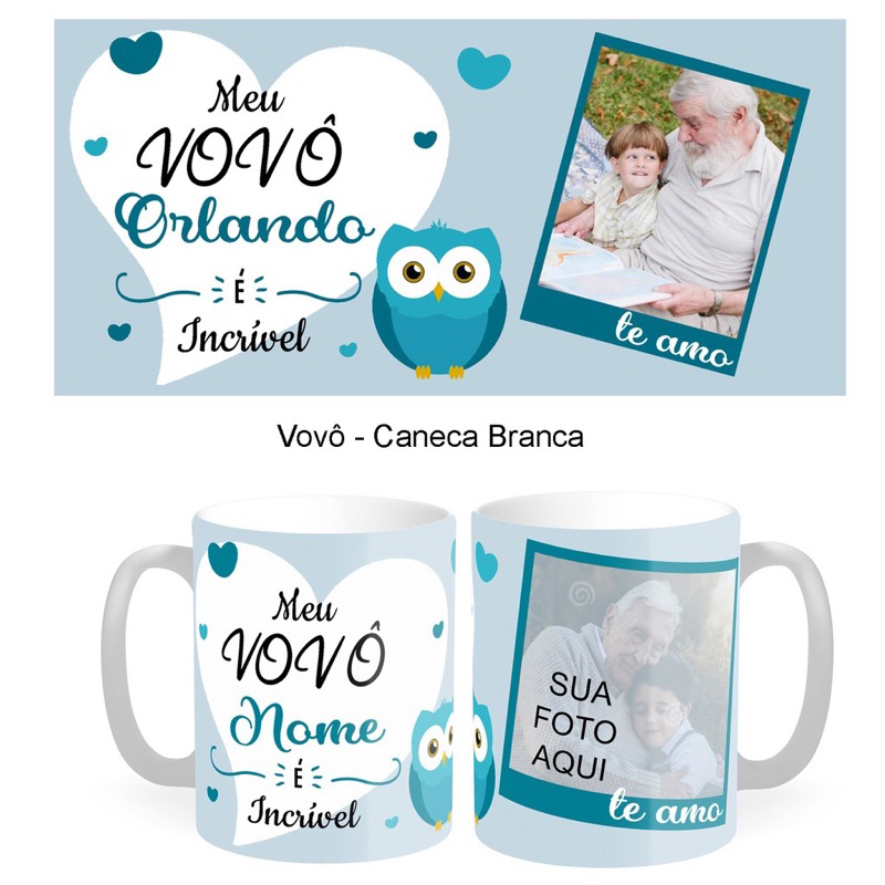 Caneca Vovô com Foto e nome personalizados Presente dia dos Pais