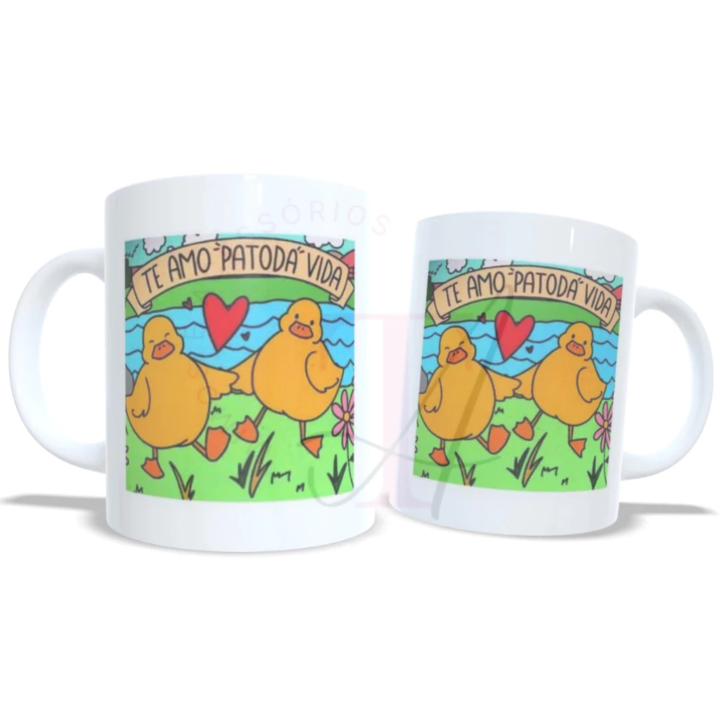 Caneca xícara de cerâmica porcelana Personalizada Pato Vida Te amo