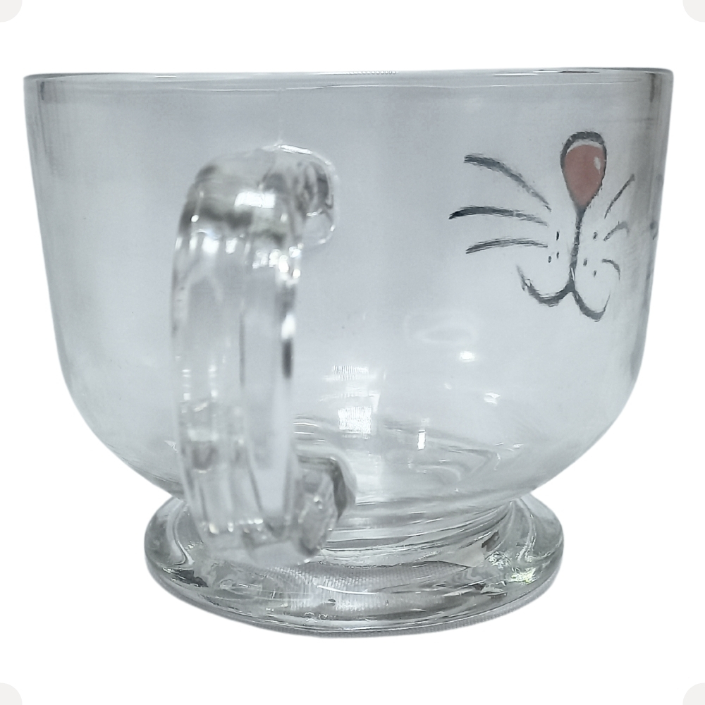 Caneca Xícara Jumbo de Vidro Resistente Cat Gato Gatinho Para Café Chá Caldo Cereal 500ml Haüskraft.