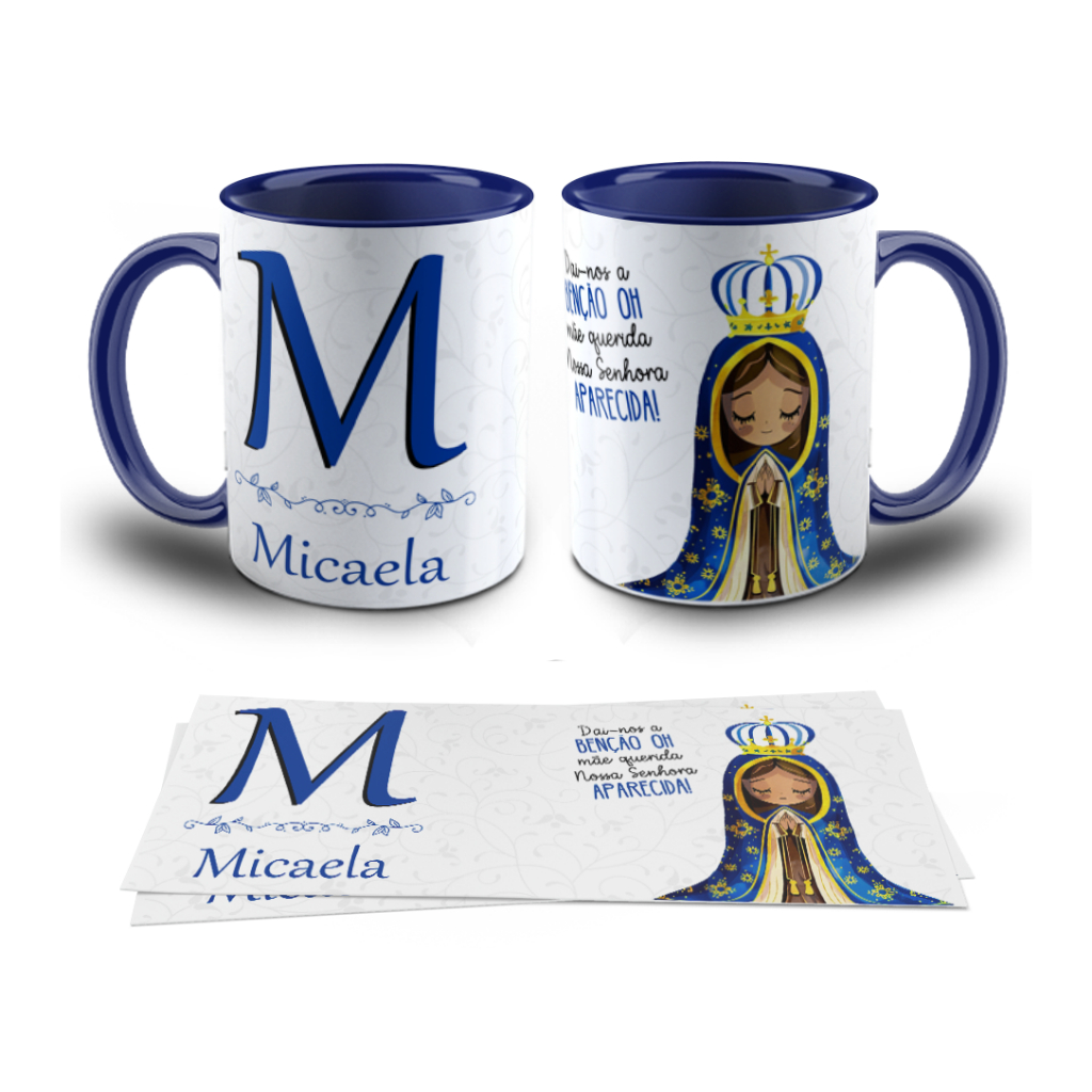 Caneca xícara Nossa Senhora Aparecida personalizada com letra e nome Alfabeto