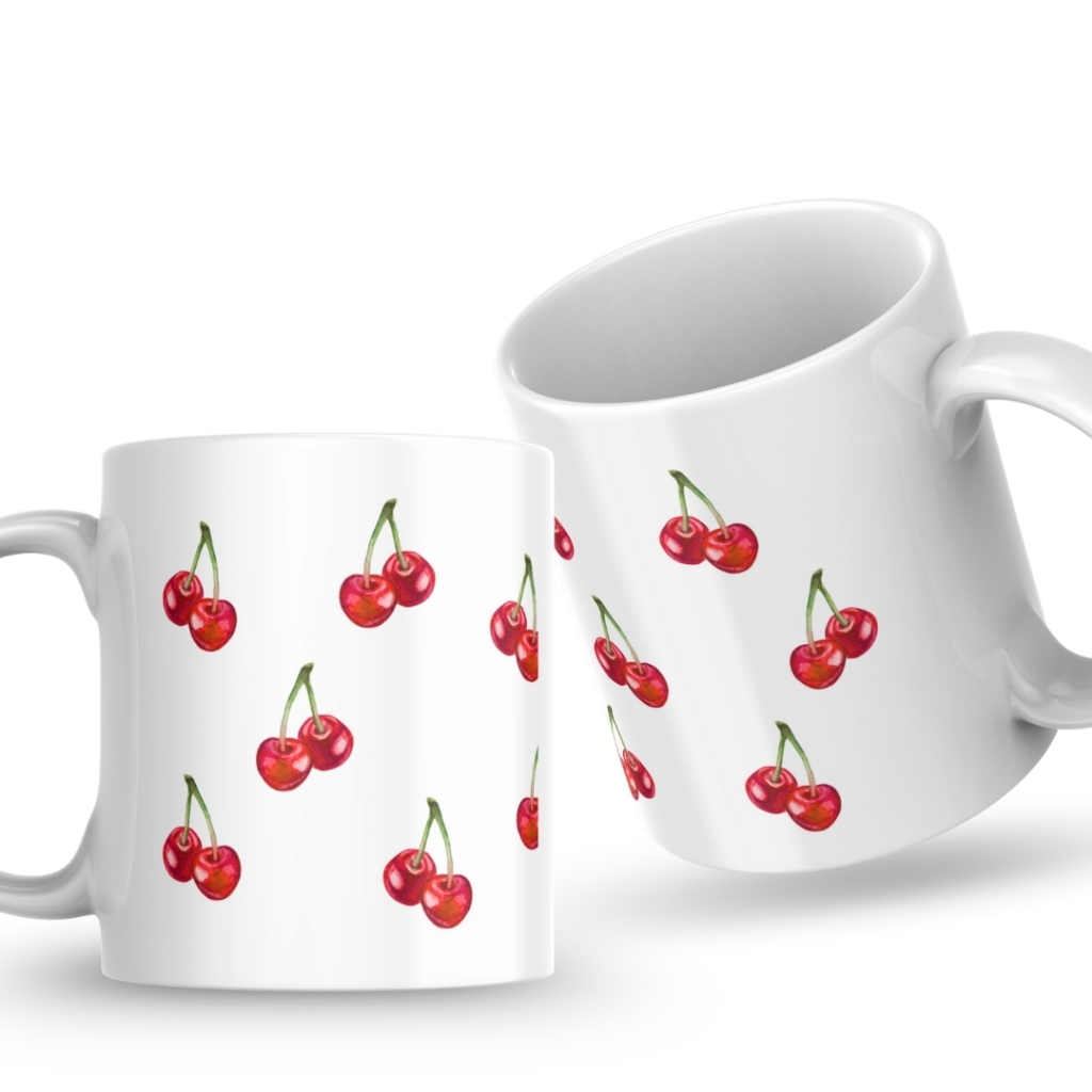 Caneca Xicara Porcelana 325ml Cerejas Casa Decoração Personalizada Presente Pinterest Enxoval