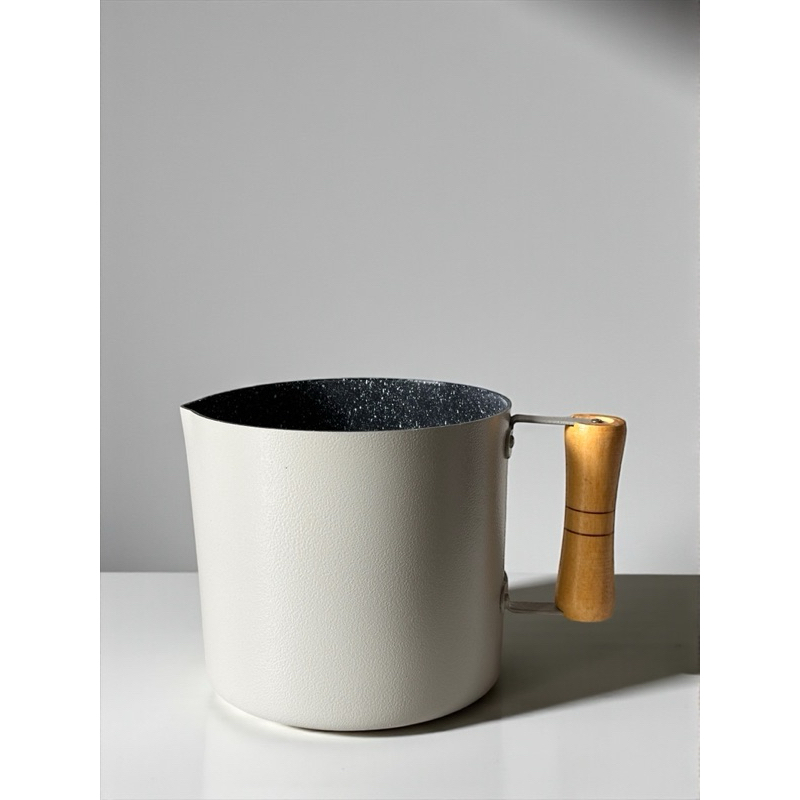 Caneco - Contém: 1 peça - Material: Alumínio - Cabo de madeira; - Diâmetro x Altura x capacidade 12cm x 12,0cm (1 litro) 14cm x 13,0cm (1,5 litros) 16cm x 13,2cm (2,0 litros) - Espessura: 1,3 mm - Possui revestimento em cerâmica nas cores: Branco com pintinhas pretas; Preto com pintinhas brancas; Cinza com pintinhas pretas; - Pintura externa microtexturizada (essa tinta possui uma resistência superior); Dicas de cuidados e conservação: - Não utilizar produtos produtos abrasivos, lavar somente com sabão e utilizar somente o lado amarelo da bucha para lavar dentro e fora do caneco; - Não utilizar utensílios de alumínio ou inox pra manusear qualquer tipo de alimento no caneco, pois pode arranhar a peça; - Manter a chama do fogo somente abaixo do caneco, para não ter risco de ir queimando o cabo ao longo do tempo. ATENÇÃO⚠️ Não apto para ser utilizado em fogão por indução!