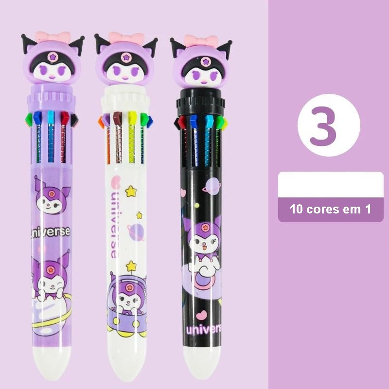 Caneta 10 em 1 Hello Kitty - Kuromi 10 cores diferentes esferográfica multicolorida papelaria/escritório/escola