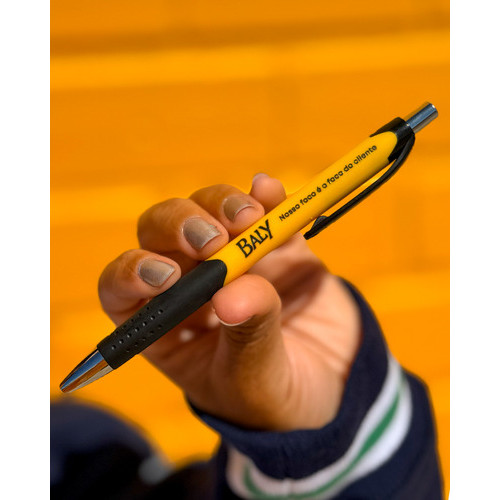 Um detalhe que faz diferença. Com design exclusivo e escrita confortável, essa caneta acompanha o dia a dia com personalidade. Simples, funcional e com a identidade Baly, a maior marca brasileira de energéticos.