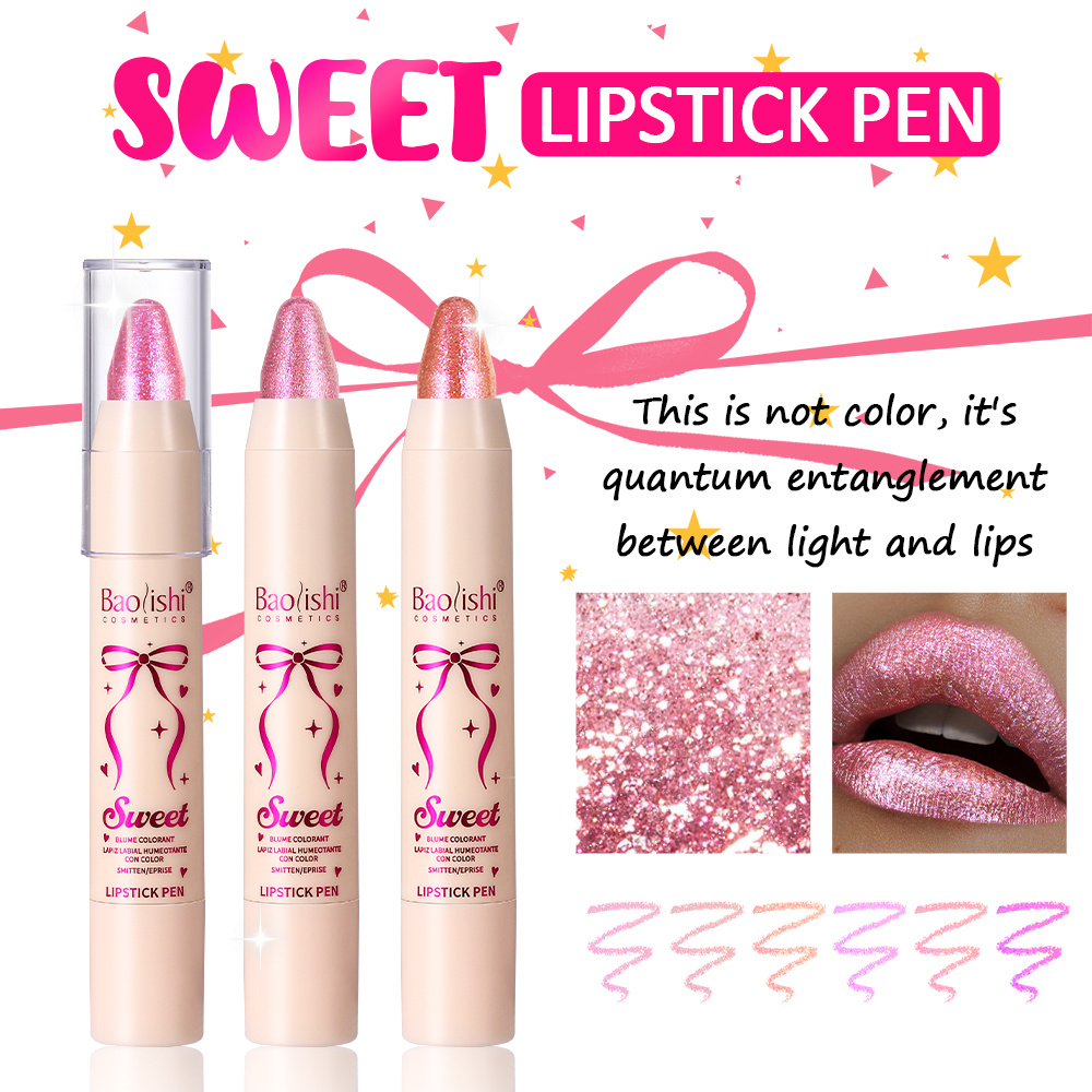 Caneta Batom Brilhante De 6 Cores Baoliu , Lápis Labial Pérola , Maquiagem De Longa Duração Para Festa , Festival , Nata