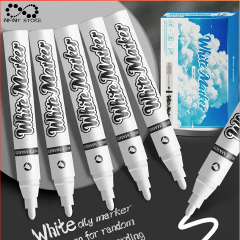 Caneta Branca Acrílica Esfumada Artística Marcadora - Grossa 1mm Artes Tinta Branco Exterior(B-1934)