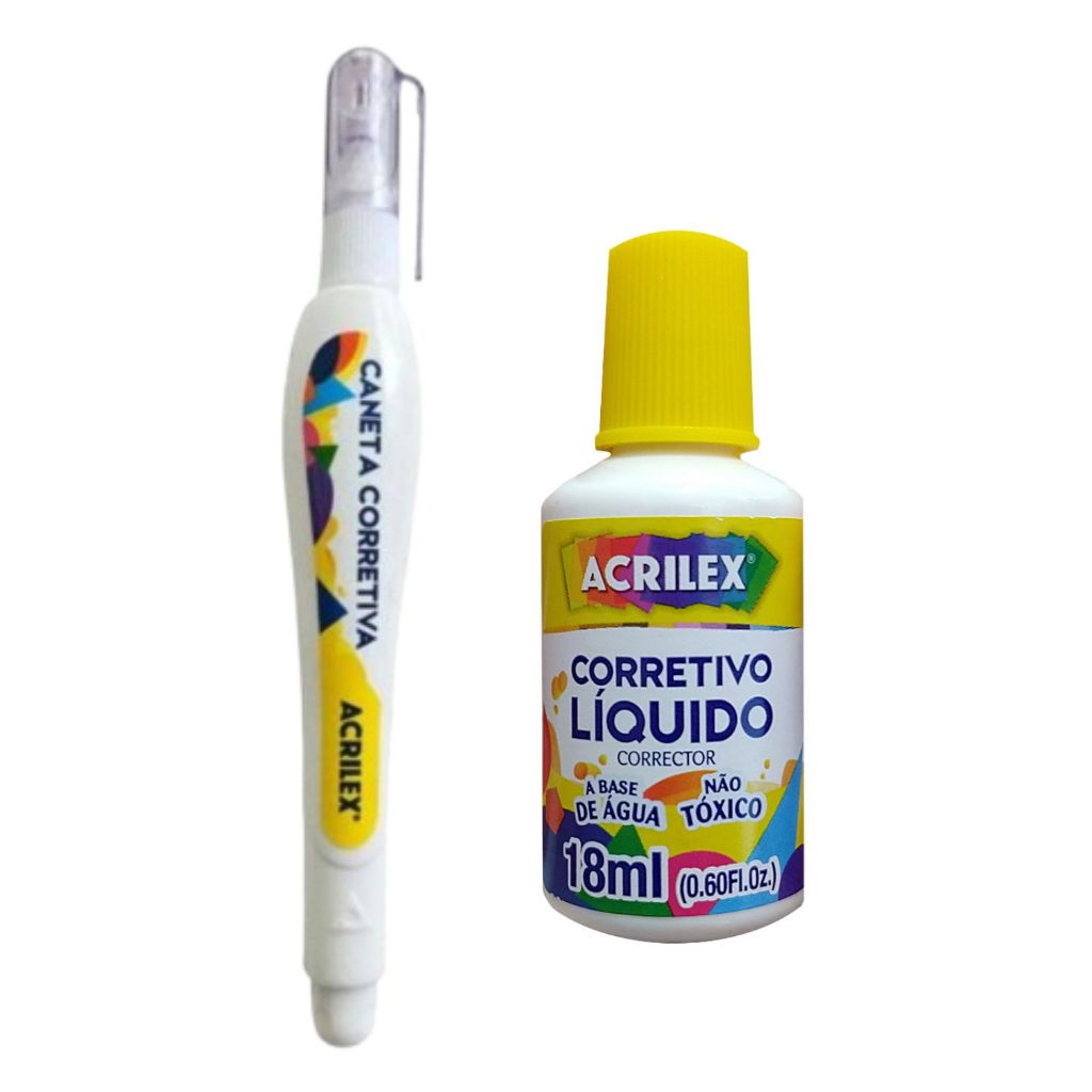 CANETA CORRETIVA 7ML E CORRETIVO LÍQUIDO 18ML KIT ACRILEX