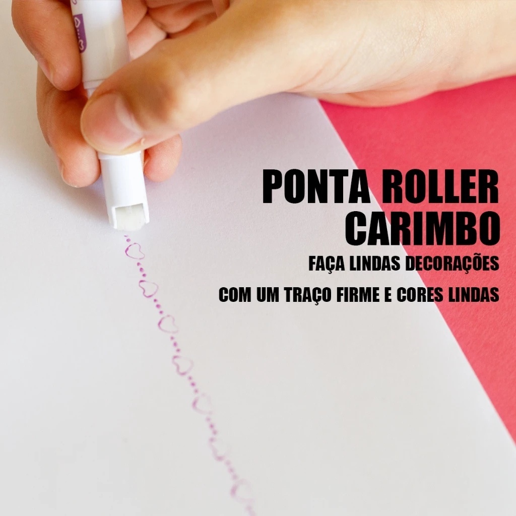 Destaque seus textos, decore seus cadernos ou crie artes únicas com as Canetas Carimbo Roller um carimbo com desenhos criativos; Um item indispensável para quem ama papelaria fofa, criativa e funcional. Observe :que todas as canetas que oferecemos apresentam o mesmo decorativo; a única variação está na quantidade, não no decorativo em si. Destaques do Produto: com carimbo decorativo (linha, ondas, corações, estrelas e mais) • Uso Criativo: Ideal para decorar planners, bullet journals, agendas, anotações escolares, cartas, cartões, e muito mais. • Fácil de Usar: Basta pressionar levemente o carimbo sobre o papel para criar linhas decorativas com facilidade. • Cores Variadas: Cores vibrantes e tinta de secagem rápida. • Design Compacto: Canetas com 13,5 cm – ideais para estojos, mochilas e uso escolar. Benefícios: Estimula a criatividade e organização Ideal para crianças, adolescentes e adultos Perfeito para uso escolar e diário criativo Presente ideal para quem ama papelaria divertida Garanta já a sua Caneta Carimbo Roller Ponta Dupla na versão unitária ou nos kits promocionais e transforme sua rotina com mais cor, diversão e estilo!