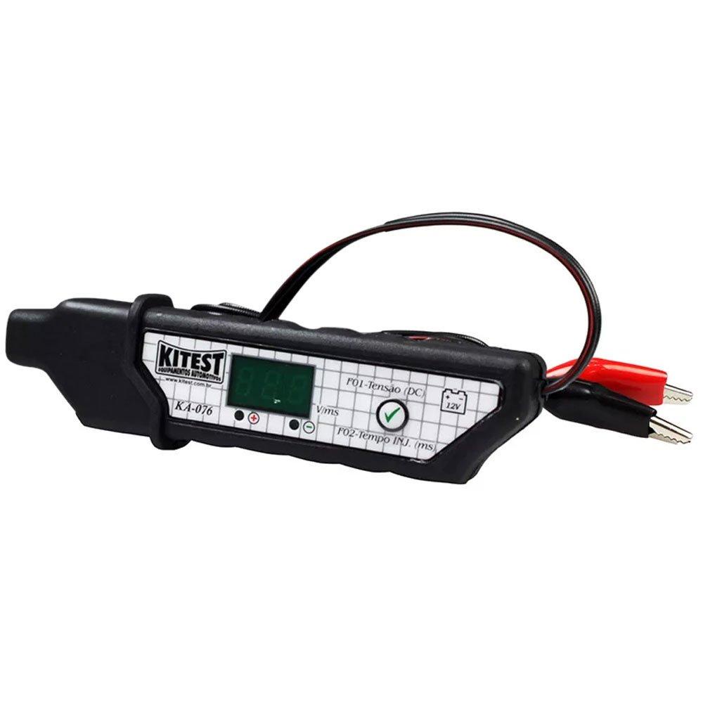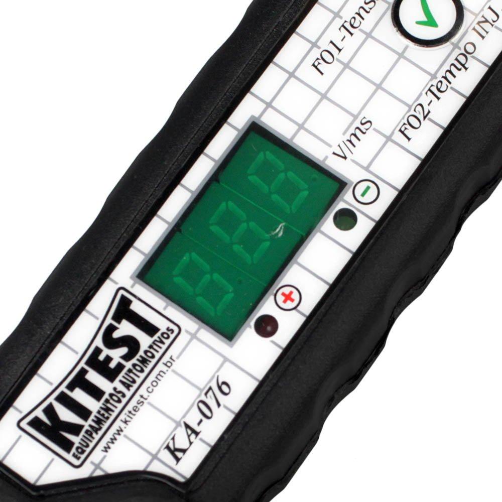 Alimentação 12V (própria bateria do veículo) Facilita o teste de polaridades de tensão, tornando o reparo mais rápido e eficiente Mede tensão contínua (DC) de 0 a 25V Mede tempo de injeção (milisegundos) de 0 a 99 ms Pode ser usado na rede CAN que não irá interferir no funcionamento do veículo e na transmissão de dados pela rede CAN Ideal para testar de forma rápida, os pulsos dos bicos injetores Com Led de alto brilho, dispensando assim o uso de cordão de luz, facilitando o trabalho em lugares com pouca iluminação Com cabo de três (3) metros polarizado Constituído de: - 1 Módulo eletrônico com display - 1 Manual de Instruções Garantia: 1 Ano