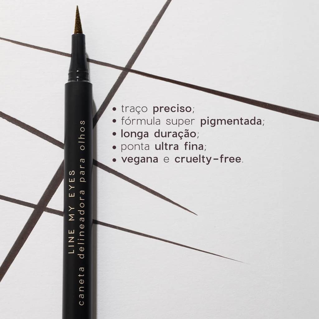 Você Já Reparou Como Um Olho Delineado Muda Totalmente a Maquiagem? Compare Um Visual Antes e Depois de Usar o Delineador e Veja Como Esse Produto Faz Toda a Diferença No Resultado Final da Sua Produção. para Um Traço Preciso e com Cor Vibrante, Você Pode Contar com a Line My Eyes Edition, a Caneta Delineador da Linha Océane Edition. Se Você Já Conhece o Produto Na Sua Cor Preta, Vai Se Surpreender Também com a Cor Marrom, Uma Tonalidade Super Versátil Que Combina com Vários Looks, Estilos e Personalidades e Que Vai Bem em Produções Diurnas ou Noturnas. Ela É Incrível para Todos Os Tipos de Delineados, Desde o Clássico, Passando Pelo Gatinho e Indo Até Os Mais Elaborados, Sua Imaginação É Quem Manda Essa Caneta Delineadora Possui Uma Fórmula Super Pigmentada Que Garante Uma Cor Intensa e de Longa Duração. Ela Também Possui Uma Ponta Ultra Fina para Que Você Consiga Fazer Um Traço Preciso e Na Espessura Que Você Deseja. Esse Tipo de Delineador para Olhos É Fácil de Usar e É Recomendado Até Mesmo para Quem Não Tem Muita Experiência Na Arte da Maquiagem. A Line My Eyes Possui o Selo de Produto Cruelty-Free e Vegano, o Que Significa Que Ela Não É Testada em Animais e Nem Possui Ingredientes Dessa Origem em Sua Composição. Precisando de Um Item para Transformar o Seu Olhar ou Quer Dar Um Presente Perfeito para Quem Você Ama? Eyeliner Edition Tem Tudo para Ser Sua Queridinha de Beleza Smart! Existe Diferença Entre Caneta Delineadora e Lápis de Olho? Sim, Existe. e a Principal Delas É a Textura. a Caneta Delineadora É Mais Líquida, Mas Seca Rapidamente Quando em Contato com a Pele, Enquanto a do Lápis de Olho É Cremosa e Intensa. o Traço Deles Também É Diferente: o da Caneta É Mais Nítido e Fica com Um Toque Seco, Enquanto o do Lápis de Olho É Cremoso e Pode Ser Esfumado. A Line My Eyes Pode Ser Usada em Maquiagens Artísticas? Graças a Sua Ponta Ultra Fina, a Line My Eyes É Incrível para Maquiagens Artísticas, com Delineados Gráficos Perfeitos e Impressionantes. com Ela, Você Pode Criar Traços Geométricos de Forma Precisa, Linhas Duplas e Muitos Desenhos Criativos com Um Produto de Maquiagem para Os Olhos, Desenvolvida Especialmente para Esse Fim.
