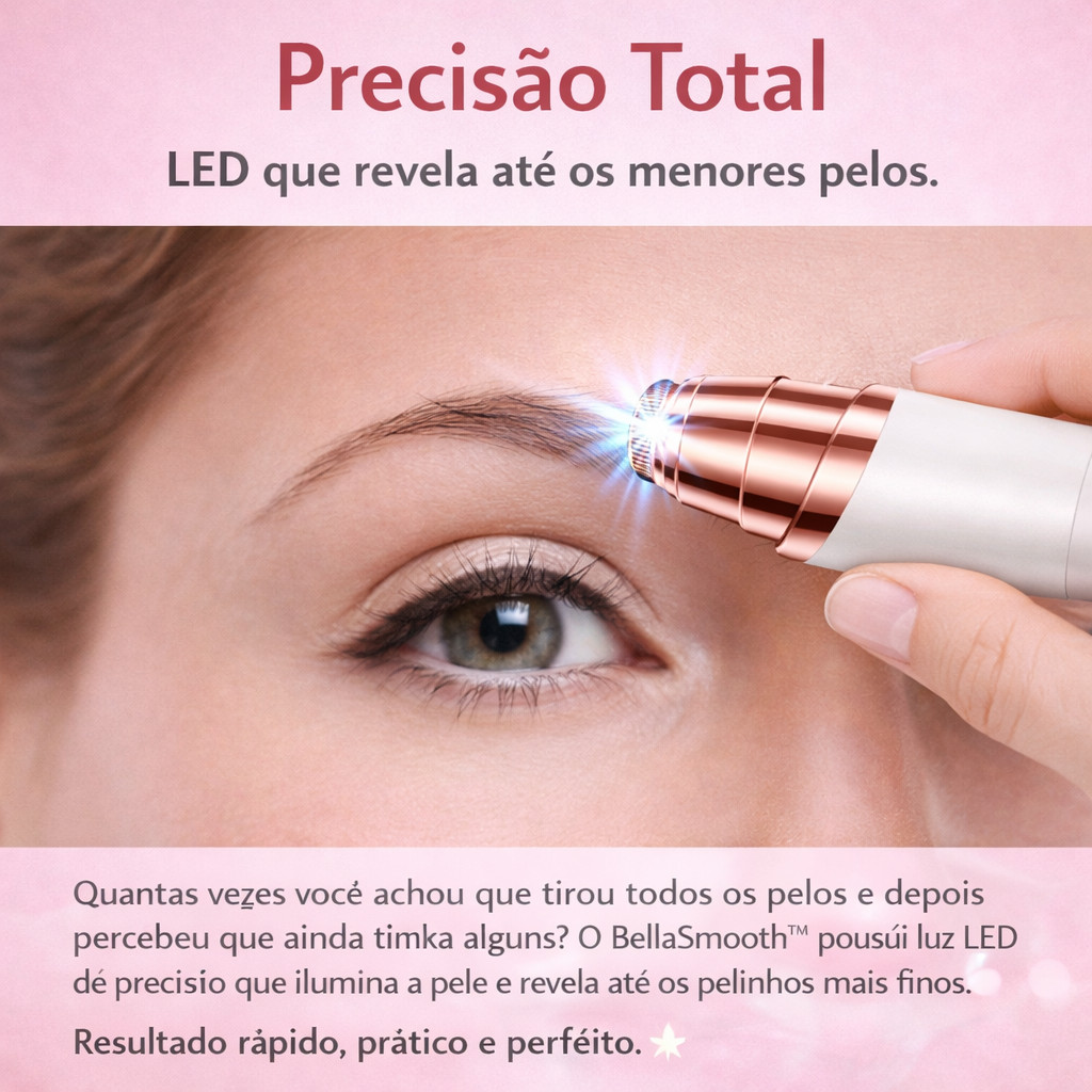 Caneta Depiladora Facial de Pelos Sobrancelha Elétrica USB Bella Smooth A Bella Smooth é a solução prática e moderna para remover pelos faciais indesejados com precisão e conforto. Desenvolvida para cuidar da sua beleza no dia a dia, essa caneta depiladora elétrica permite aparar sobrancelhas, buço e penugens faciais de forma rápida, segura e sem dor. Com design compacto e elegante, ela é perfeita para levar na bolsa e usar sempre que precisar. Sua tecnologia de corte suave remove os pelos delicadamente, sem irritar a pele, sendo ideal para todos os tipos de pele, inclusive as mais sensíveis. A luz LED integrada na ponta facilita a visualização dos pelos mais finos, garantindo mais precisão no acabamento. Assim você consegue manter suas sobrancelhas alinhadas e o rosto sempre impecável, em qualquer lugar e a qualquer momento. Além disso, a Bella Smooth é recarregável via USB, oferecendo mais praticidade e economia. Basta carregar e usar por até 45 minutos, garantindo várias utilizações antes de uma nova recarga. Principais Benefícios Remove pelos faciais de forma rápida e precisa Ideal para sobrancelha, buço e penugens do rosto Tecnologia suave que não agride a pele Luz LED para facilitar o acabamento Portátil e discreta, cabe na bolsa Recarregável via USB, sem necessidade de pilhas Características do Produto Material: Polipropileno Alimentação: Recarregável via cabo USB (Bivolt) Potência: 2W Tempo de uso: aproximadamente 45 minutos Tempo de carregamento: cerca de 8 horas Produto portátil e leve Indicação Indicado para remover pelos indesejados do rosto com segurança, proporcionando pele lisa e acabamento perfeito nas sobrancelhas. ✨ Tenha sempre uma solução prática para manter sua beleza em dia com a Bella Smooth!