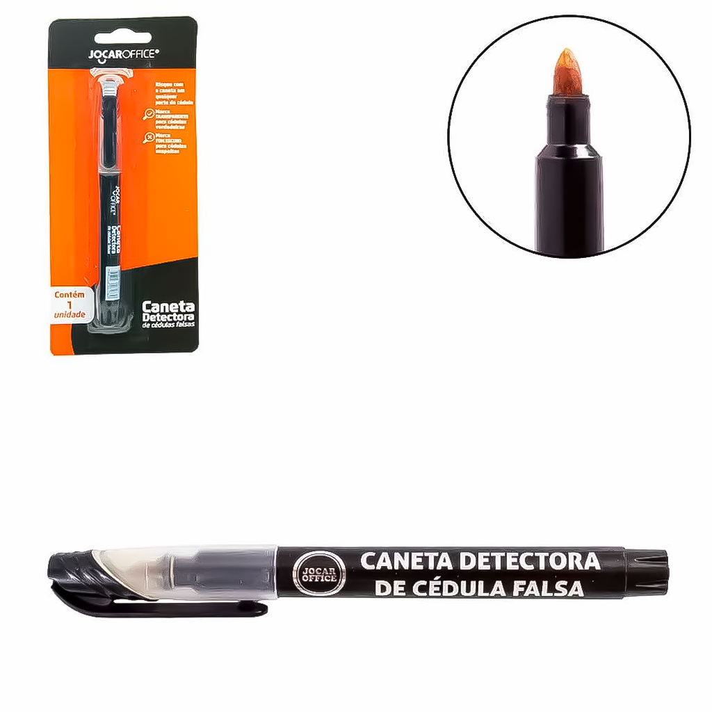 COMERCIAL VIPASA DISTRIBUIDORA. Caneta Detectora De Cédulas Dinheiro Papel Falso Anti Furto Golpe Prático Rápido Caneta Detectora de Cédulas Falsas Método de Uso: • Risque com a caneta em qualquer parte da cédula • Marca Transparente para cédulas verdadeiras • Marca Tom escuro para cédulas suspeitas Composição: • Resinas termoplásticas, carga atóxica à base de água, corantes e umectantes, pavio de acetato e ponta de fibra de poliéster Precauções: • Conservar em temperatura de até 30°C. Após o uso feche a caneta com a tampa. Não expor aos raios solares Caneta Detectora de Cédula Falsa 6059 / unidade / Jocar A caneta detectora de cédula falsa é uma ferramenta de segurança útil para comerciantes, caixas eletrônicos e outras instituições financeiras que precisam verificar rapidamente a autenticidade de notas de dinheiro. As canetas detectoras de cédula falsa são uma medida preventiva importante contra fraudes e ajudam a proteger negócios e consumidores. Além disso, elas são acessíveis e fáceis de transportar, tornando-se uma ferramenta indispensável para aqueles que lidam com dinheiro diariamente. Especificações: - Tipo de produto: Caneta Detectora de Cédula Falsa - Tamanho aproximado: 14,1 x 1,2 cm - Cor: Preto - Composição: Plástico COMERCIAL VIPASA DISTRIBUIDORA.