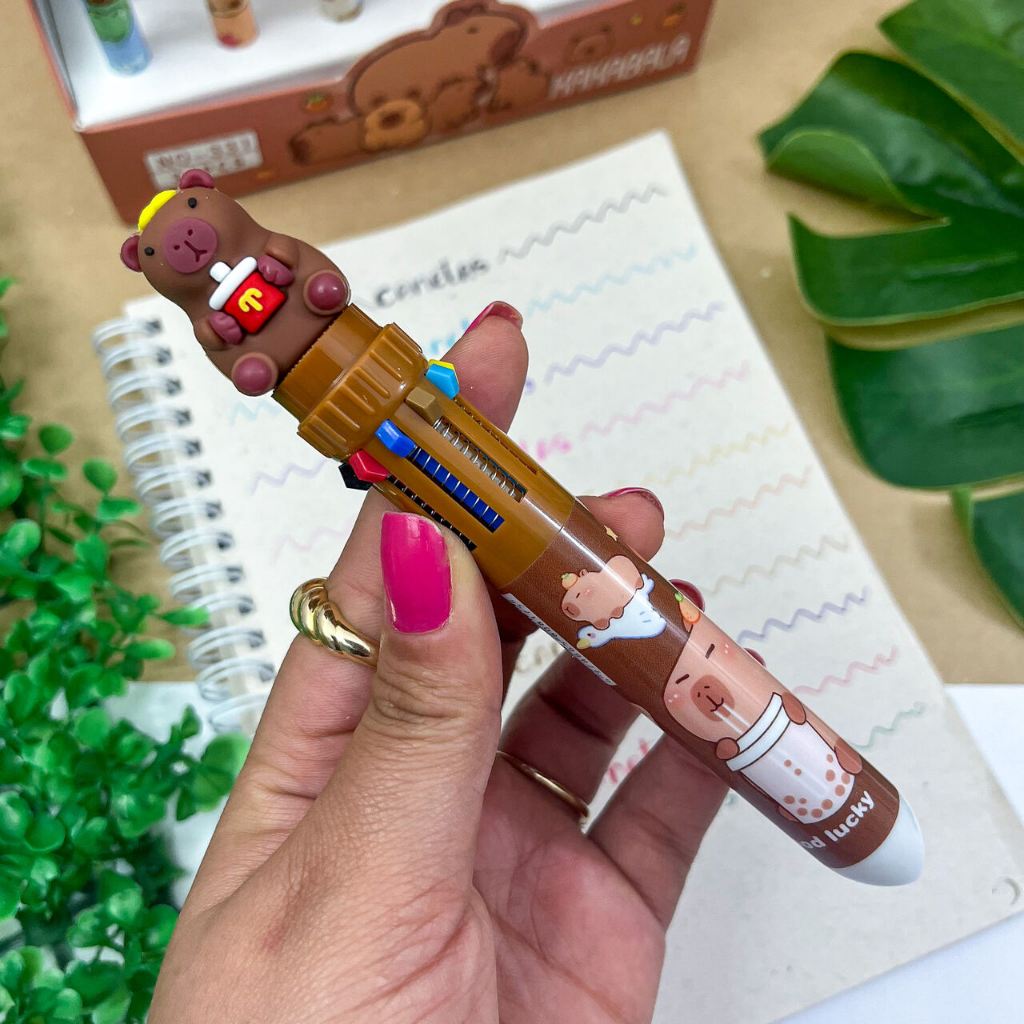 Caneta Esferográfica 0.7mm com 10 Cores Capivara - Importado