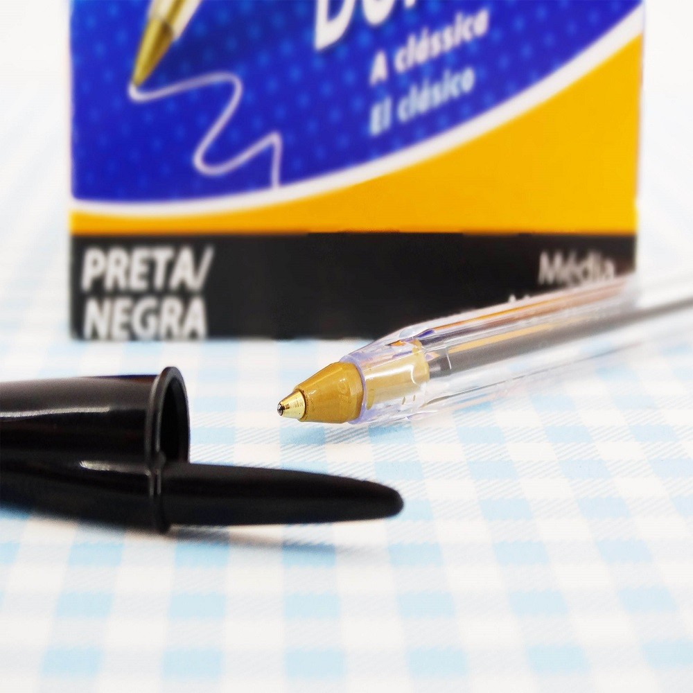 Caneta esferográfica clássica e favorita em milhares de lares, escritórios e escolas no mundo. Possui corpo hexagonal que assegura o conforto na escrita e transparente para visualização da tinta. Tinta de alta qualidade, que seca rapidamente evitando borrões na escrita. Maior Durabilidade: Escreve até 2 Km. Escrita macia. Fabricada com a quantidade certa de matéria-prima para uso prolongado e seguro. Não contém PVC. Possui tampa da mesma cor da tinta e também é ventilada em conformidade com padrão ISO. Na ponta conta com uma esfera de Tungstênio, perfeita e muito resistente, quase mais duras que o diamante. 100% das esferográficas são feitas por um processo altamente controlado. Desde seus início em 1950, a Companhia vem aperfeiçoando as máquinas e os processos de fabricação necessários para produzir canetas de alta qualidade e produzidas em massa. • Caixa com 50 unidades; • A clássica caneta esferográfica, líder mundial; • Favorita em milhares de lares, escritórios e escolas; • Corpo Hexagonal; • Ponta média 1,0 mm com esfera de tungstênio; • Tampa ventilada.