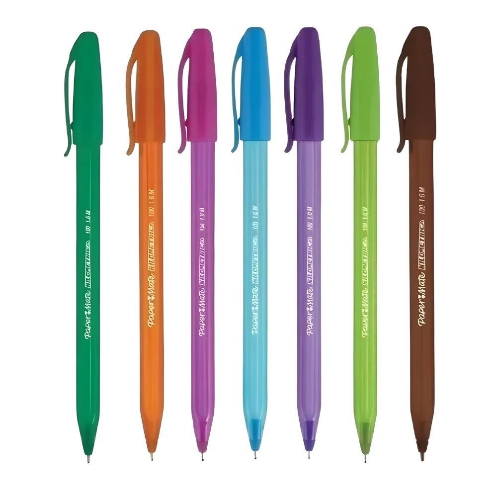 Caneta Esferográfica Paper Mate Kilométrica 100 Colorz Fina 0,7 mm, 8 Cores e 2 Pretas, Multicor,