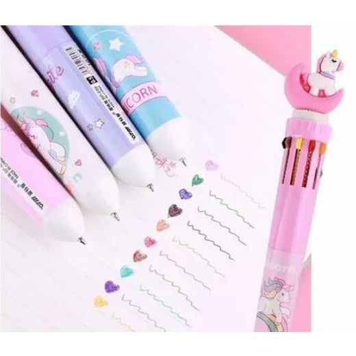 Caneta Esferográfica Retrátil 10 em 1 Várias Cores fofas