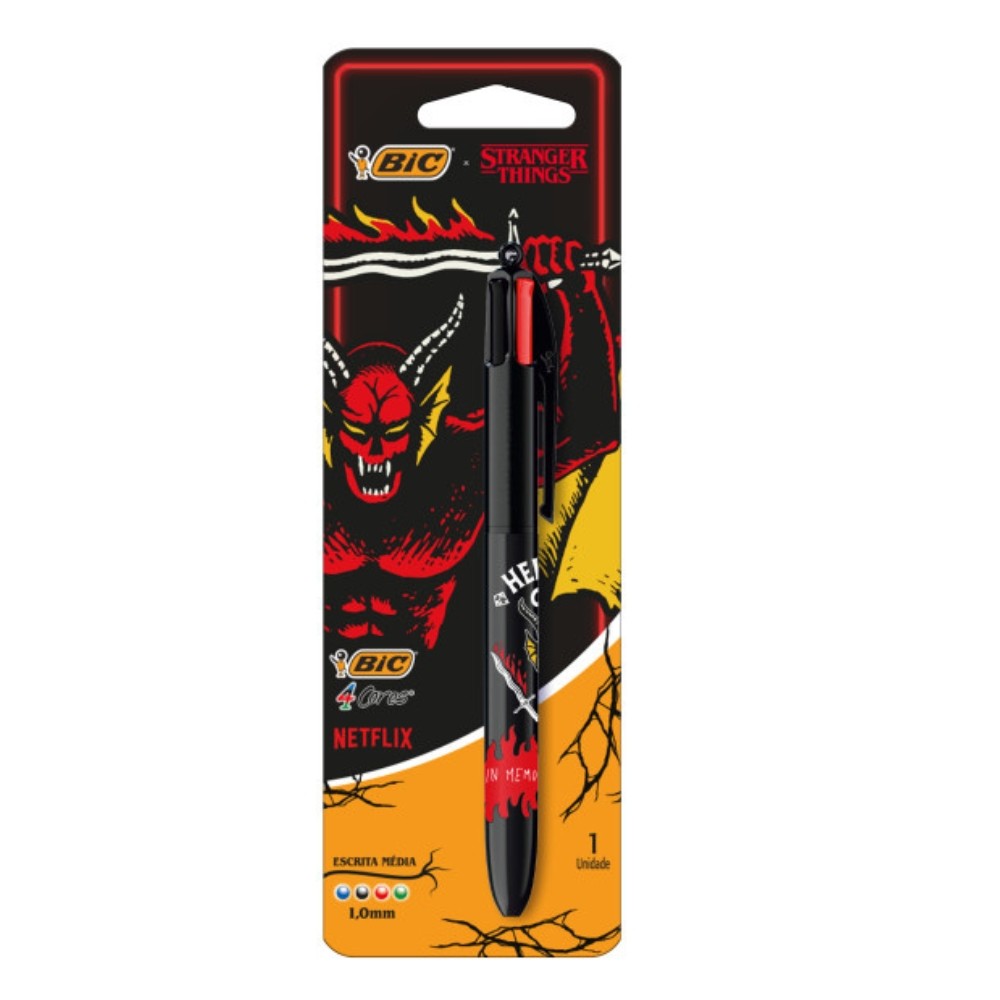 Caneta Esferográfica Retrátil BIC 4 Cores Stranger Things Corpo Hellfire Club - 530005
