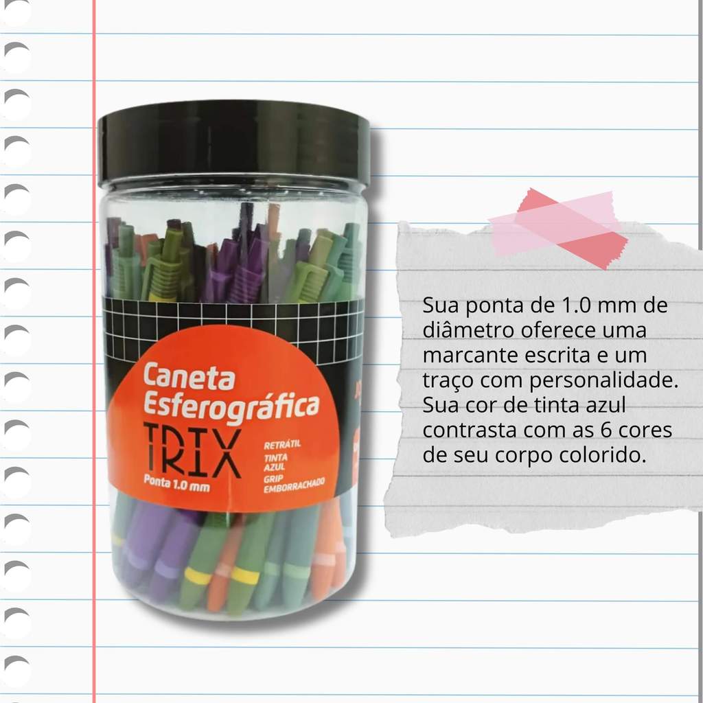 Caneta Esferográfica Trix 1.0 Azul - Pote c/ 50 Unidades Sortidas Jocar Office Leonora - 97944