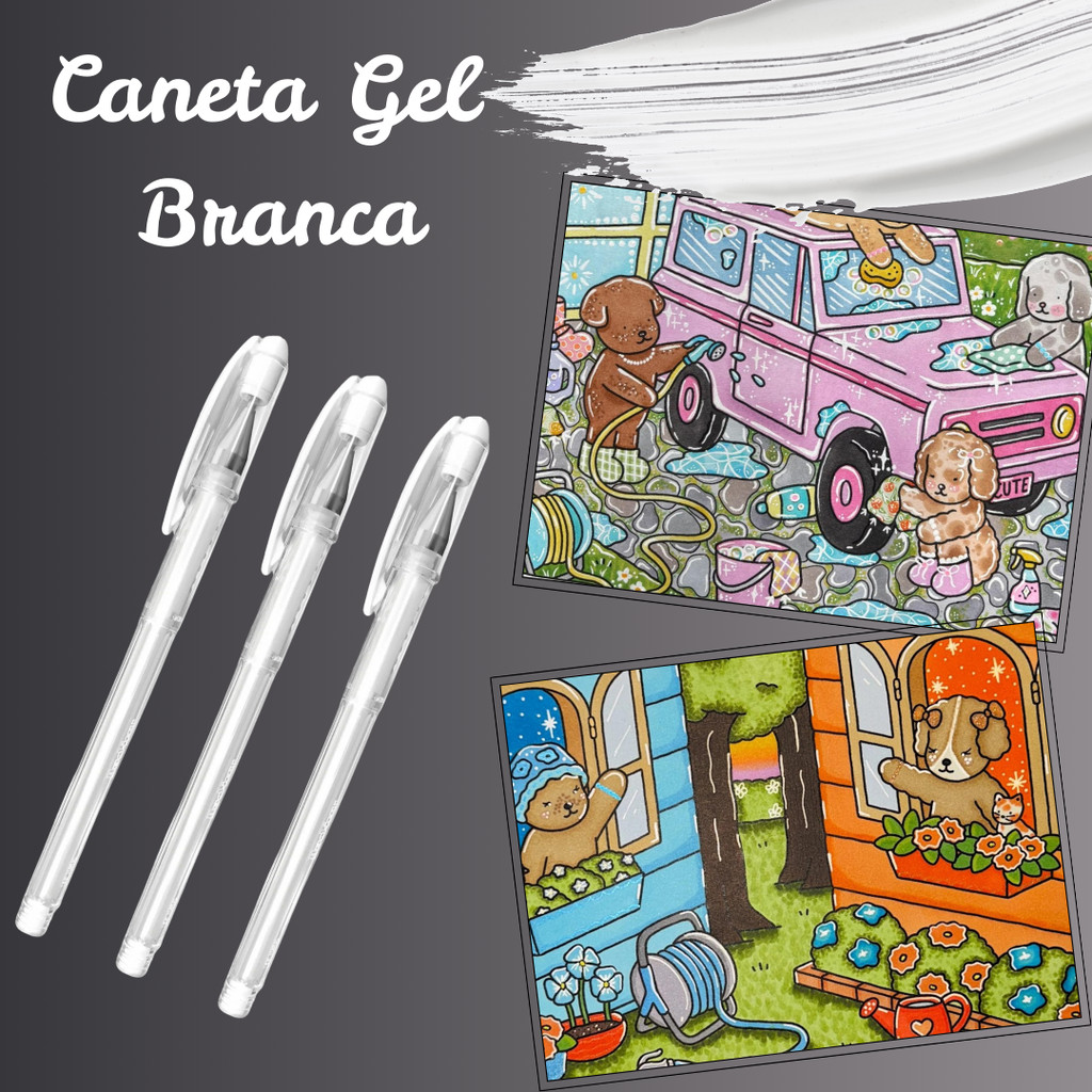 Caneta Gel Branca 0.6mm Traço Fino Colorir Iluminar Detalhes Desenho Pintura