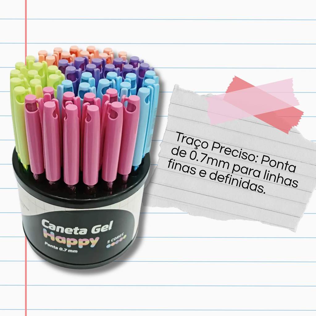 Caneta Gel Happy 0.7 Colorida - Display C/ 50 Unidades Sortidas Jocar Office Leonora - 97926