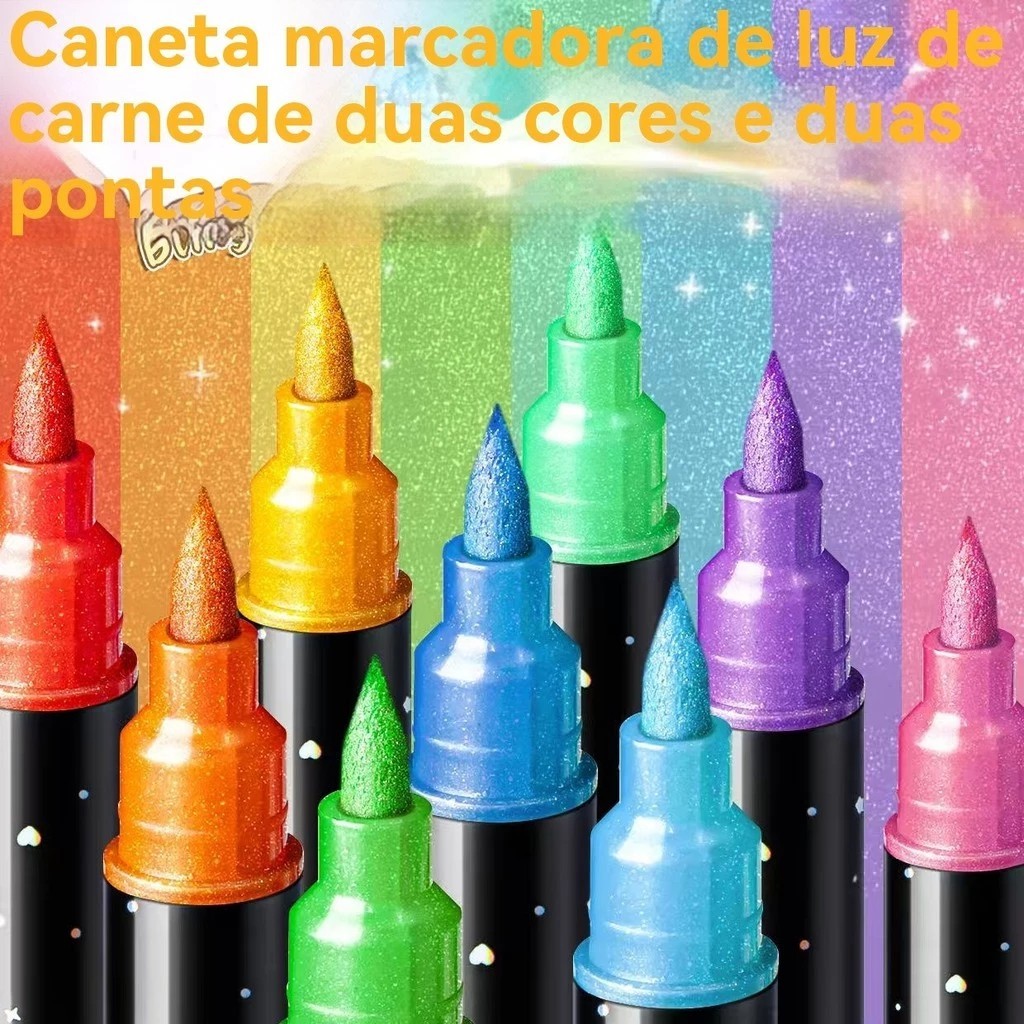 Kit de canetas glitter metálicas com ponta dupla, ideal para lettering, desenhos, artesanato e trabalhos criativos no dia a dia. As cores possuem efeito brilhante e ajudam a destacar traços, detalhes e acabamentos em diferentes tipos de criação. Modelo com ponta dupla, prático para quem busca mais versatilidade no uso. Disponível em diferentes variações de cores, conforme o modelo escolhido, sendo uma boa opção para estudantes, artistas, hobby e uso escolar ou criativo. Destaques do produto: Canetas glitter metálicas Ponta dupla Ideal para lettering e desenho Cores vibrantes com efeito brilhante Boa opção para artesanato e trabalhos criativos Disponível em diferentes quantidades de cores Importante: Escolha a variação desejada antes da compra. A quantidade de cores pode variar conforme o modelo selecionado.