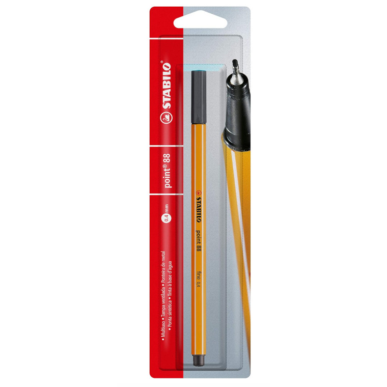 Caneta Hidrográfica Point 88 0,4mm Preta- Stabilo