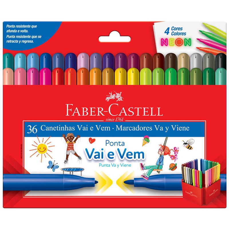 Caneta hidrográfica ponta vai e vem 15.0136VVZF com 36 cores Faber-Castell