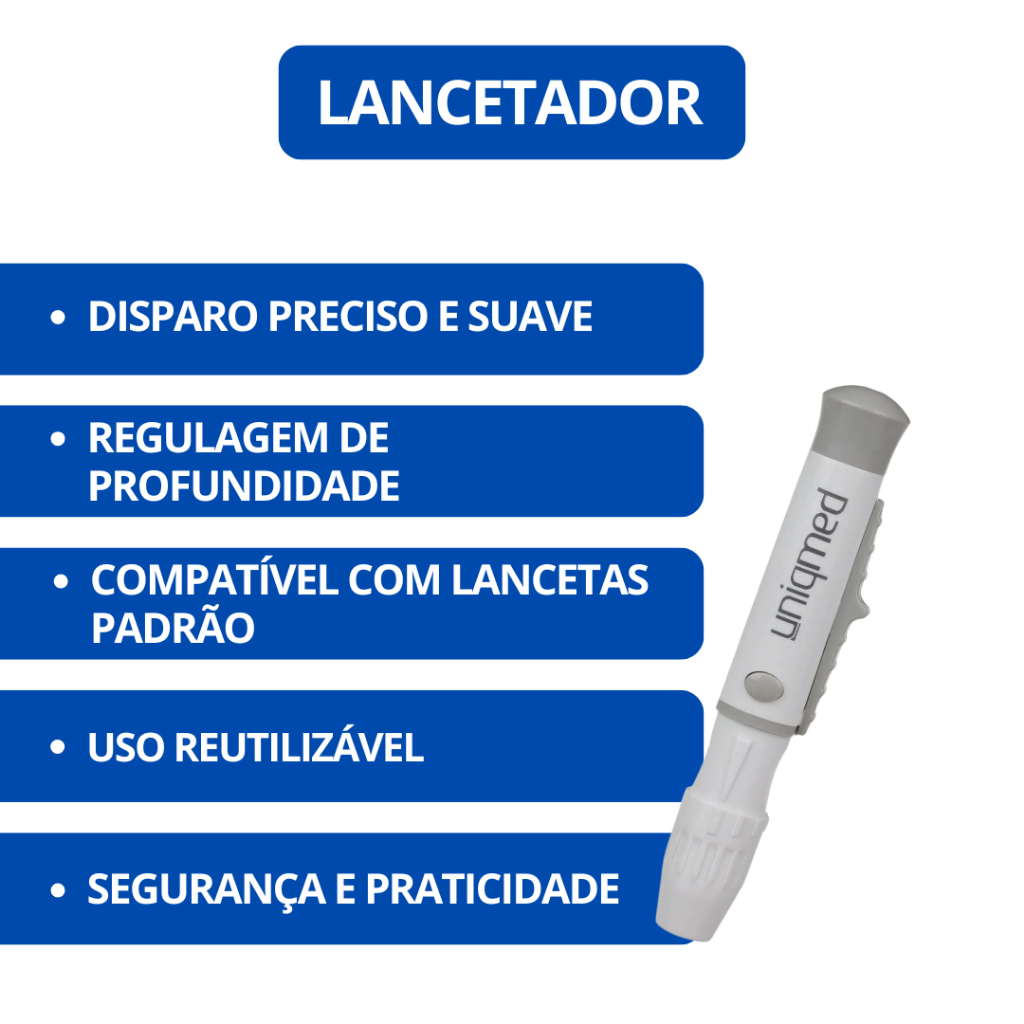 Caneta Lancetadora Uniqmed Universal – Para Teste de Glicemia | Compatível com Lancetas