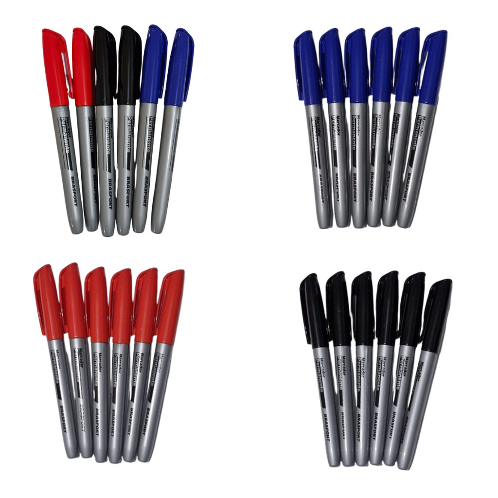 Caneta Marcador Permanente Brasfort 2MM Kit 3 Unidades Secagem Rápida E Resistente à Água