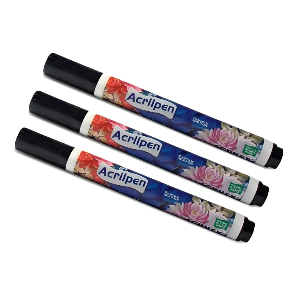 Caneta Para Tecido Permanente Acrilpen Kit 3 Unidades Cor Preta