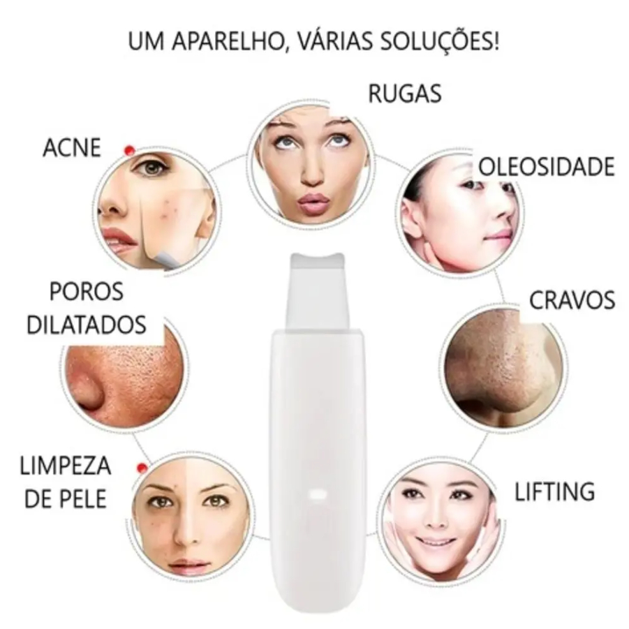 A Caneta Ultrassônica Facial 3 em 1 foi desenvolvida para oferecer um cuidado completo com a pele de forma prática, segura e não invasiva. Ideal para quem busca uma limpeza profunda, melhora da textura da pele e potencialização dos tratamentos faciais no dia a dia. Utilizando vibração ultrassônica de alta frequência, o aparelho atua diretamente nos poros, removendo impurezas, oleosidade, cravos, células mortas e resíduos acumulados, ajudando a reduzir acne e prevenindo o entupimento dos poros. Seu funcionamento é indolor e adequado para todos os tipos de pele. Conta com três modos de uso ajustáveis: • Limpeza profunda dos poros por vibração ultrassônica • Hidratação e ionização para melhor absorção de nutrientes • Lifting para auxiliar na firmeza da pele e suavizar linhas finas A espátula em aço inoxidável promove uma esfoliação suave, estimulando a circulação sanguínea, a produção de colágeno e a renovação celular, deixando a pele mais macia, uniforme e luminosa desde as primeiras aplicações. Leve, compacta e ergonômica, pode ser carregada via USB, facilitando o uso em casa ou em viagens. Um equipamento versátil e eficiente para homens e mulheres que desejam manter a pele limpa, saudável e bem cuidada. Especificações Técnicas • Tensão de saída: DC 5V • Potência: 2W • Capacidade da bateria: 600 mAh • Tempo de carregamento: aproximadamente 2,5 a 3 horas • Tempo de uso: até 1,5 horas • Material: ABS com espátula em aço inoxidável • Método de trabalho: Vibração ultrassônica • Alimentação: USB • Cor: Branco Recomendado para uso de 2 a 3 vezes por semana, proporcionando resultados visíveis com segurança e conforto.