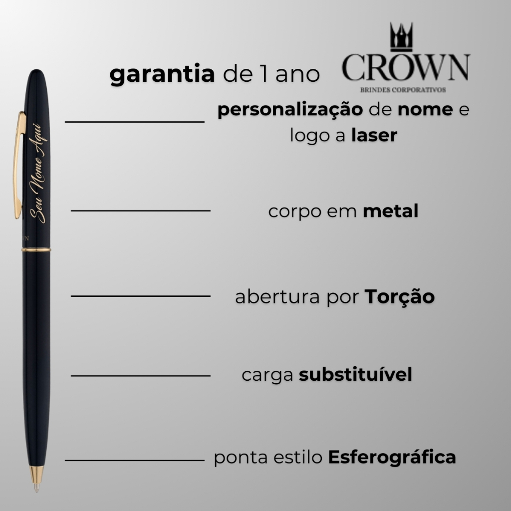 Caneta Personalizada Crown Duty Esferográfica Com Nome Logo Presente Formatura Luxo
