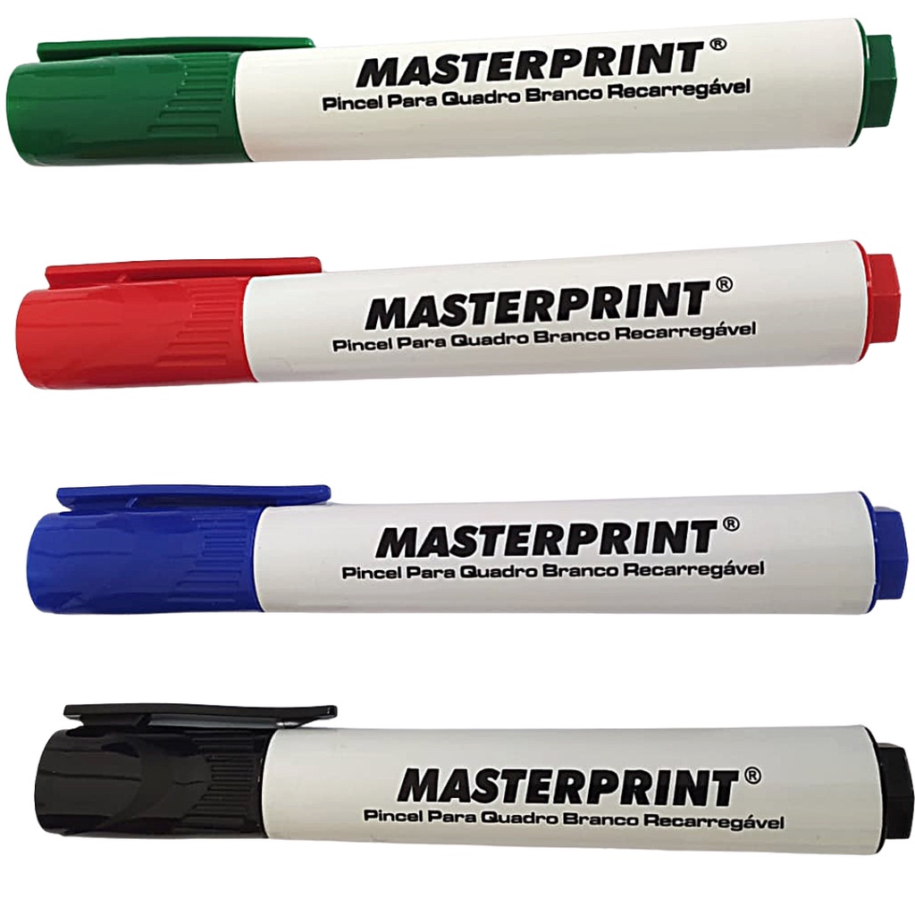 Caneta Pincel Quadro Branco Recarregável Cores Azul Preto Vermelho Verde Masteprint
