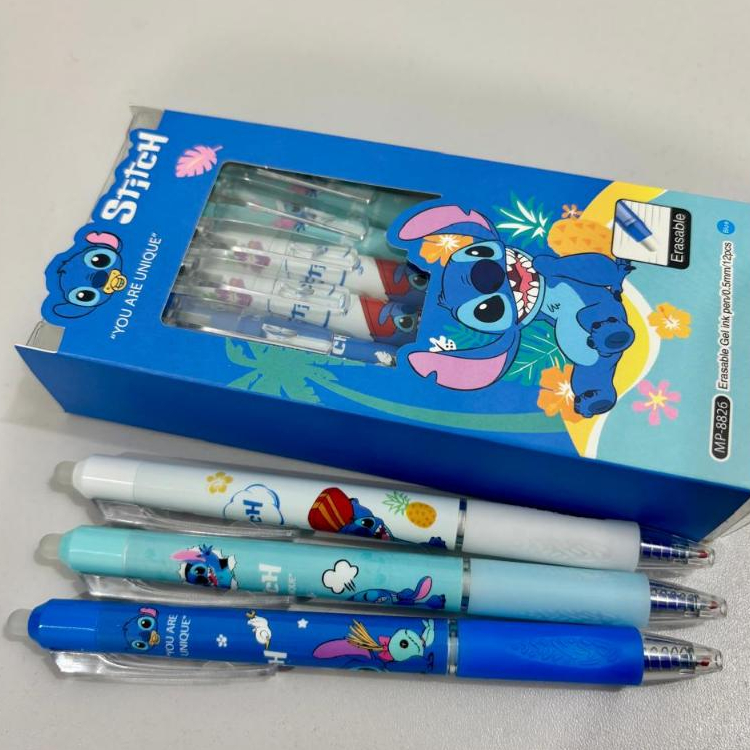 Caneta Apagável Lilo Stitch 0.5mm Contém 03 Unidades - 01 Azul escuro, 01 Azul Claro e 01 Branca Imagens reais do produto. Qualquer dúvida, estamos à disposição.