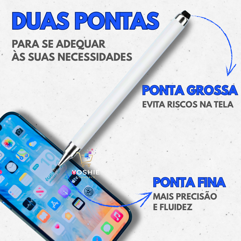 🖊️ Caneta Touch Screen Stylus Universal 2 em 1 Branca Compatível com a maioria das telas touchscreen capacitivas, proporcionando navegação suave, prática e precisa. ❗ Não compatível com dispositivos ou aplicativos que exigem canetas especiais (ativas, bluetooth ou com chip interno). Transforme sua experiência no celular, tablet ou notebook com esta caneta touch 2 em 1, ideal para navegar, rolar telas, selecionar itens e realizar tarefas do dia a dia com mais conforto e precisão. ✨ Principais Características 🔹 Modelo 2 em 1 – Duas pontas funcionais ➡️ Borracha + Silicone ❌ Não possui ponta de caneta para escrita tradicional 🔹 Compatibilidade Universal Funciona na maioria dos smartphones, tablets e notebooks com tela touch capacitiva ❌ Não funciona em jogos ou aplicativos que exigem caneta especial (como Apple Pencil, S Pen, etc.) 🔹 Alta sensibilidade Resposta rápida ao toque, sem atrasos 🔹 Design ergonômico e sofisticado Leve, confortável e ideal para uso prolongado 🔹 Material resistente Fabricada em plástico de qualidade, com pontas emborrachadas que não riscam a tela 🔹 Portátil e prática Compacta, fácil de transportar no bolso, bolsa ou estojo ⚠️ Atenção Importante 🔸 Não possui conexão bluetooth, USB ou qualquer tipo de pareamento 🔸 Não é magnética 🔸 Funciona apenas por contato direto com a tela 🧭 Modo de Usar 🔹 Escolha a ponta ideal (borracha ou silicone) 🔹 Utilize diretamente sobre a tela touch do dispositivo 💡 Dicas de Uso 🔹 Mantenha a ponta sempre limpa para melhor sensibilidade 🔹 Após o uso, recoloque a tampa para proteger a ponta e aumentar a durabilidade 📦 Conteúdo da Embalagem 🔹 1x Caneta Touch Screen Universal 🔹 Com tampa protetora 📩 Ficou com alguma dúvida? Nossa equipe está à disposição no chat para te ajudar!