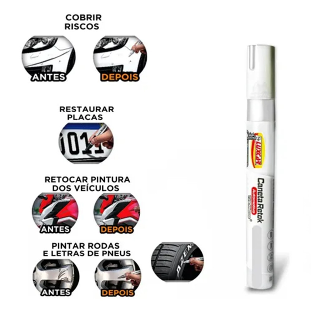 Caneta Tira Riscos Carro Branco Luxcar Retok Cobre Arranhão Automotivo Previne Ferrugem Resistente a Água