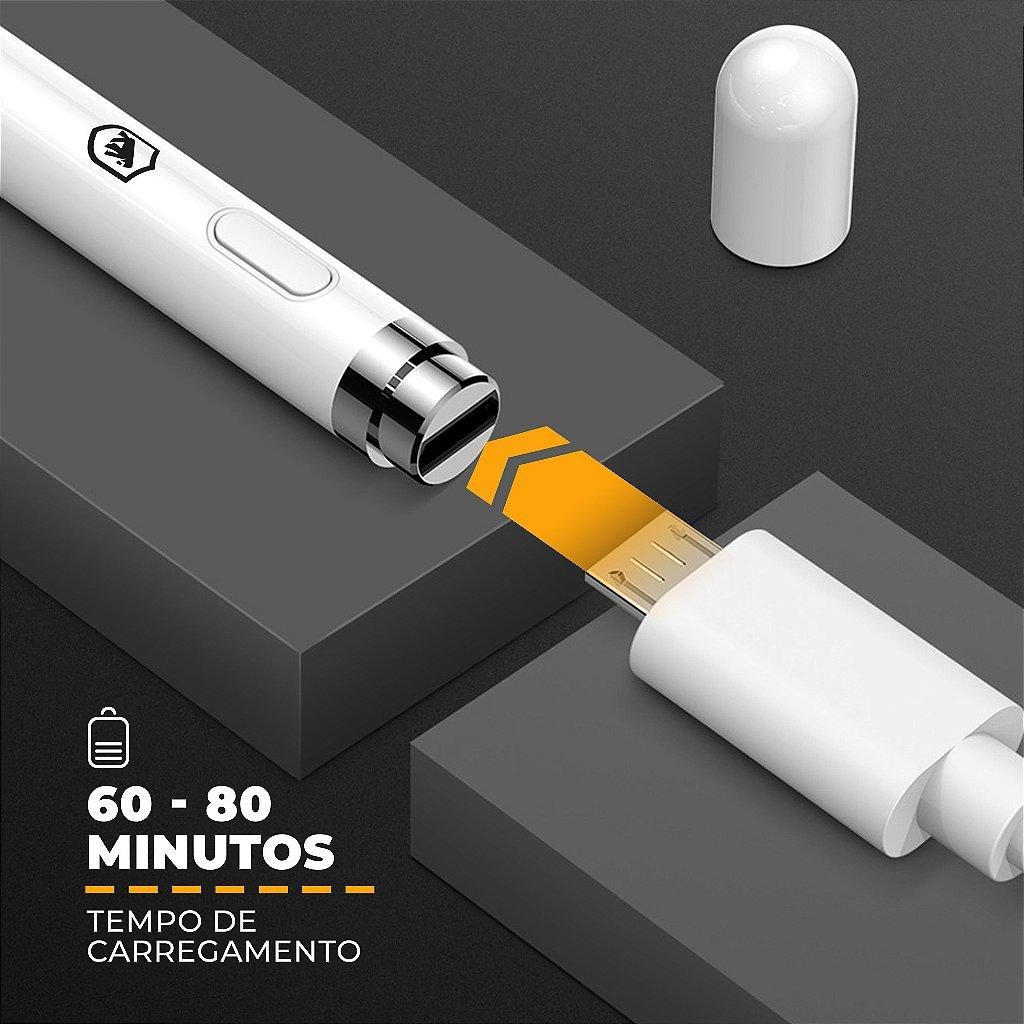 A Caneta Touch Capacitiva Recarregável da Gshield combina tecnologia e precisão para oferecer uma experiência de escrita e desenho natural e fluida em tablets e smartphones. Com uma ponta fina de 1.45mm, ela é ideal para atividades como leitura de e-books, seleção de filmes, criação de desenhos detalhados e escrita digital, garantindo toques precisos e sem falhas. Fabricada em liga de alumínio durável e leve, a caneta proporciona um manuseio confortável, sendo resistente e prática, além de não deixar marcas ou riscos na tela do seu dispositivo. Equipada com uma bateria de polímero de lítio de 130mAh, oferece até 10 horas de uso contínuo e 30 dias em modo stand-by, perfeita para o seu dia a dia corrido. Compatível com uma ampla gama de tablets e smartphones, a Caneta Touch Gshield se destaca pela sua versatilidade, tornando-se a companheira ideal para profissionais, estudantes e entusiastas digitais que buscam precisão e praticidade em suas atividades. Se tiver dúvidas utilize o campo de perguntas no final da página ou leia as avaliações de outros consumidores. ESPECIFICAÇÕES - Marca: Gshield - Material: Liga de alumínio - Tipo de Bateria: Polímero de Lítio - Capacidade de Bateria: 130mAh - Imput: 5V/0.2A - Tempo em espera/ stand-by: 30 dias em Stand-by | 8-10 horas em uso - Tempo de Carregamento: 60-80 Minutos - Cor: Branca - Largura do traço: 1,45mm - Tamanho: 17,5 x 0,96cm - Peso: 18g COMPATIBILIDADE - Compatível com iPad, Tablets e Smartphones ITENS INCLUSOS - 1x Caneta Touch Capacitiva - 1x Cabo de carregamento