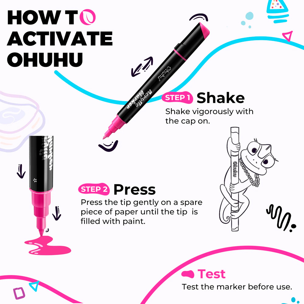 Ohuhu Canetas Acrílicas de Ponta Dupla (Fina e Redonda) - Kit Premium 30 Cores Vibrantes para Pintura em Tecido, Pedra, Vidro, Cerâmica, Madeira e Artesanato Geral 1. Experimente a versatilidade do Kit de Canetas Acrílicas Ohuhu 30 Cores, com ponta dupla (fina e redonda), ideal para detalhes precisos e preenchimento de áreas maiores em seus projetos de arte e artesanato, oferecendo flexibilidade para diversos estilos. 2. Amplie suas possibilidades criativas! Desenvolva trabalhos artísticos em uma vasta gama de superfícies como tecido, pedra, vidro, cerâmica, madeira, metal, papel e lona. Perfeito para projetos DIY, personalização e pintura em tela. 3. Desfrute de cores vibrantes e alta cobertura com a tinta acrílica de secagem rápida Ohuhu. Crie peças duradouras com um acabamento profissional, garantindo resultados impressionantes em cada traço para todos os seus projetos de pintura. 4. Projetadas para estimular a criatividade de artistas de todos os níveis, estas canetas acrílicas oferecem um fluxo suave e controlado, facilitando a criação de contornos nítidos e preenchimentos homogêneos com facilidade e precisão. 5. O kit Ohuhu de 30 cores é a escolha perfeita para quem busca um conjunto completo e de qualidade para pintura artística, artesanato ou para presentear entusiastas. Tenha todas as cores essenciais ao seu alcance para dar vida às suas ideias. Garantia 90 dias