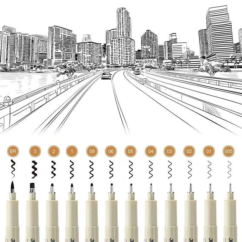 Canetas De Tinta Micron Com Forro De Pigmento De Ponta 3/6/9/12 Para Esboços De Mangá , Desenho De Linha De Gancho