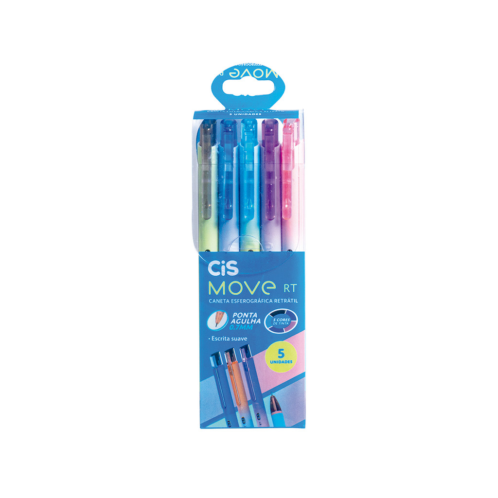 Canetas Esferográfica Retrátil Move 0.7mm 5 Cores
