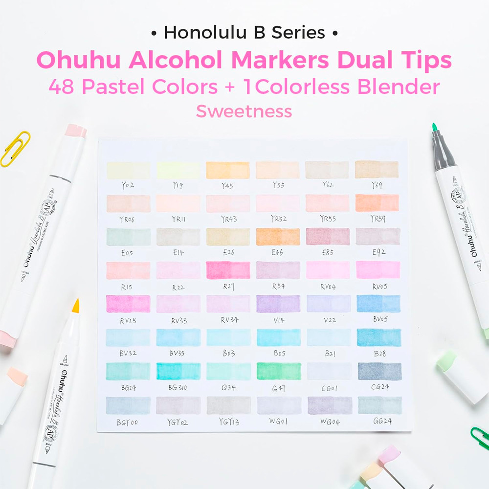 Ohuhu Honolulu B Marcadores Artísticos Dual Tip 48 Cores Pastel À Base de Álcool - Canetas Profissionais Pincel e Ponta Fina para Desenho, Ilustração, Manga e Design 1. Ohuhu Honolulu B 48 Cores Pastel: Descubra o Kit de Marcadores Artísticos Ohuhu Honolulu B com 48 tons pastel suaves e vibrantes. Ideal para criar arte com uma paleta delicada, essas canetas de álcool oferecem pigmentação rica para dar vida às suas criações. 2. Pontas Duplas Versáteis (Brush & Fine): Cada marcador Ohuhu Honolulu B possui ponta pincel flexível para traços fluidos e preenchimentos amplos, e ponta fina para detalhes precisos e contornos nítidos. Perfeito para diversas técnicas de desenho e ilustração, garantindo transições suaves. 3. Tinta de Álcool de Alta Qualidade: Desfrute de uma experiência de coloração superior com a tinta à base de álcool Ohuhu. Proporciona cores misturáveis e sem manchas, secagem rápida e durabilidade, essencial para artistas que buscam resultados profissionais em ilustrações, design e manga. 4. Ideal para Artistas e Entusiastas: Este conjunto de marcadores Ohuhu é a escolha perfeita para artistas, estudantes e entusiastas de arte que buscam ferramentas de alta performance. Crie camadas, gradientes e efeitos de luz com facilidade em seus projetos de arte, desde esboços até obras acabadas. 5. Kit Completo para Criatividade: O Ohuhu Honolulu B oferece uma seleção abrangente de 48 cores pastel, cuidadosamente escolhidas para expandir sua criatividade. Um excelente presente para quem ama desenhar, ilustrar ou colorir, proporcionando infinitas possibilidades artísticas. Garantia 90 dias
