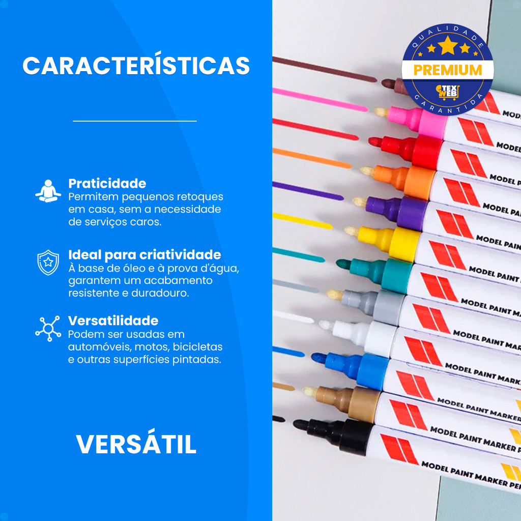Recupere o brilho e a perfeição do seu veículo com este conjunto de canetas marcadoras à base de óleo! Escolha entre 12 cores vibrantes e resistentes à água, essas canetas são perfeitas para pequenos retoques e correções na pintura de automóveis, garantindo um acabamento impecável. Fáceis de usar, proporcionam precisão nos detalhes e aderem de forma duradoura a diversas superfícies. Ideal para quem busca praticidade e um resultado profissional em casa. Redescubra a beleza do seu carro com esse kit indispensável! ------------------ CARACTERÍSTICAS Material robusto de qualidade e durabilidade; Fácil Higienização; Praticidade: Permitem pequenos retoques em casa, sem a necessidade de serviços caros; Precisão: Aplicação fácil e controlada, ideal para corrigir riscos e detalhes específicos; Durabilidade: À base de óleo e à prova d'água, garantem um acabamento resistente e duradouro; Variedade de cores: 12 opções permite encontrar a tonalidade perfeita para seu veículo; Versatilidade: Podem ser usadas em automóveis, motos, bicicletas e outras superfícies pintadas; Custo-benefício: Economiza tempo e dinheiro ao evitar reparos profissionais para pequenos danos. ------------------ IDEAL PARA Proprietários de veículos: Perfeitas para quem deseja manter o carro, moto ou bicicleta sempre com aparência impecável; Aficionados por cuidados automotivos: Pessoas que gostam de cuidar pessoalmente da estética de seus veículos; Profissionais de estética automotiva: Úteis para quem trabalha com detalhamento ou pequenos reparos de pintura; Pessoas práticas e econômicas: Quem prefere soluções rápidas e acessíveis para pequenos danos na pintura; Amantes do "faça você mesmo": Ideal para quem aprecia a praticidade de resolver problemas com as próprias mãos. ------------------ TAMANHO Dimensões aprox.: Tamanho aprox.: 11,4 cm x 1,5 cm. Peso aprox.: 21 g. ------------------ DIFERENCIAIS Prático, portátil, leve e conveniente, fácil de usar, original, alta durabilidade, eficiência e praticidade. ------------------ ITENS INCLUSOS 1 - Caneta marcadora. ------------------ Aquisições realizadas até as 14h serão postadas no mesmo dia! ------------------ - GARANTIA 30 DIAS. ------------------ NÃO PERCA ESTA OPORTUNIDADE TEMOS POUCAS UNIDADES ! ------------------ ATENÇÃO: - A imagem do produto pode sofrer pequenas alterações no tom da cor de acordo com o dispositivo que está sendo exibido. - Dimensões medidas manualmente, o tamanho pode ter um desvio de 1-3 mm. ------------------
