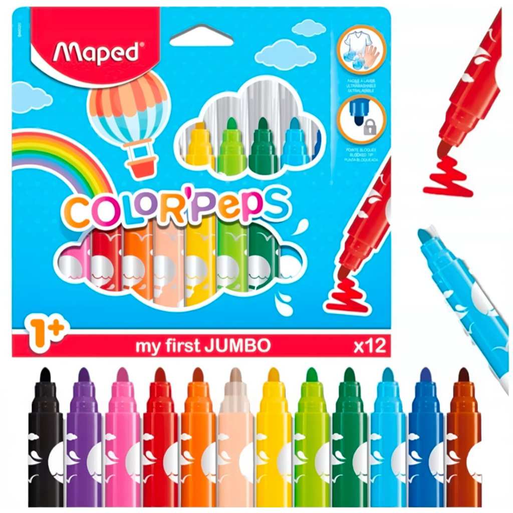 Canetinha Hidrocor Jumbo 12 Cores Atóxica Educativa e Perfeita para Primeira Infância Maped