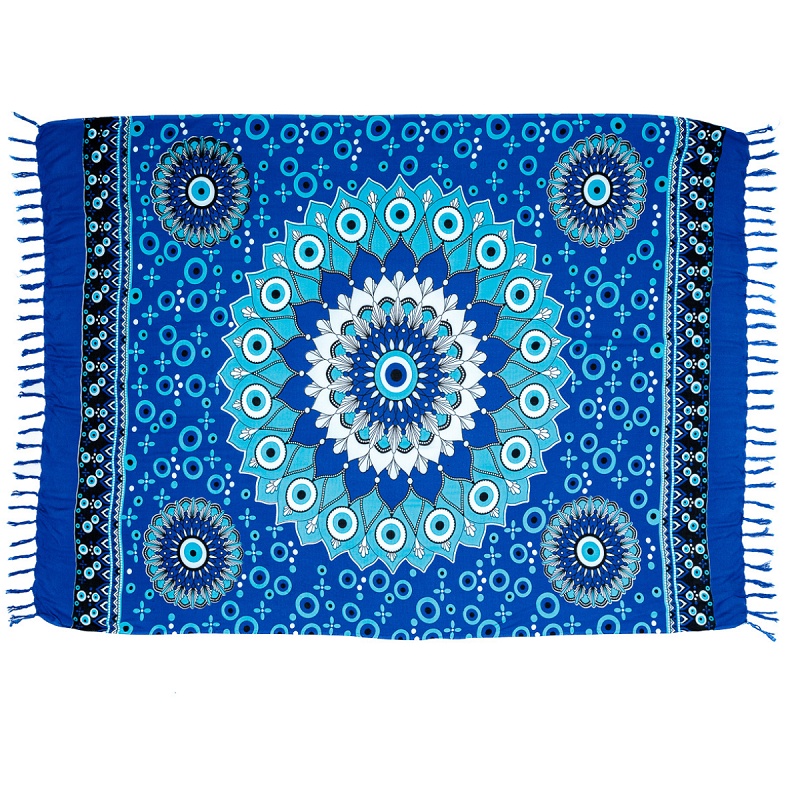 Canga de Praia Poliéster Grande Olho Grego Mandala e Elefante Saida de Banho Colorida Gigante