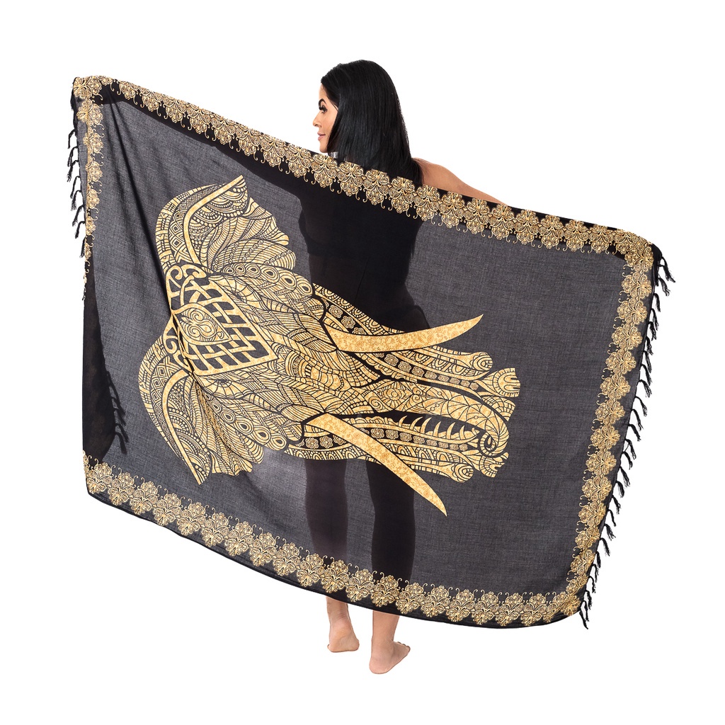 Canga De Praia Viscose Elefante Preto e Bege Grande Macia Alta Qualidade