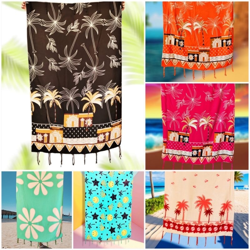 Canga De Praia Viscose/Viscolinho Com Franjas Multicoloridas Com Variações De Estampas Escolher 100 X 150cm Moda De Prai