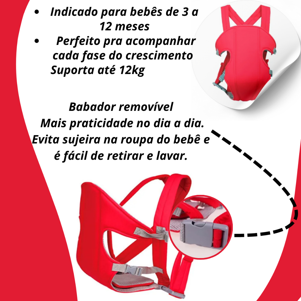 👶❤️ Canguru Ergonômico Para Bebê com Regulagem – Conforto e Segurança! Leve seu bebê para todos os lugares com mais conforto, praticidade e segurança. Nosso canguru ergonômico é ideal para bebês de 3 meses até 1 ano, suportando até 12 kg com tranquilidade. ✨ Principais benefícios: ✅ Suporte seguro até 12 kg ✅ Indicado para bebês de 3 meses a 1 ano ✅ Alças ajustáveis com regulagem para melhor encaixe ✅ Distribui o peso de forma equilibrada, evitando dores nas costas ✅ Ideal para passeios, viagens ou tarefas do dia a dia ✅ Material resistente e confortável, não machuca o bebê ✅ Disponível em 3 cores: preto, azul e vermelho 💡 Dica: Canguru ergonômico recomendado por pediatras para manter o bebê na posição correta, proporcionando sensação de aconchego e segurança. 🎁 Perfeito para presentear gestantes ou em chá de bebê!