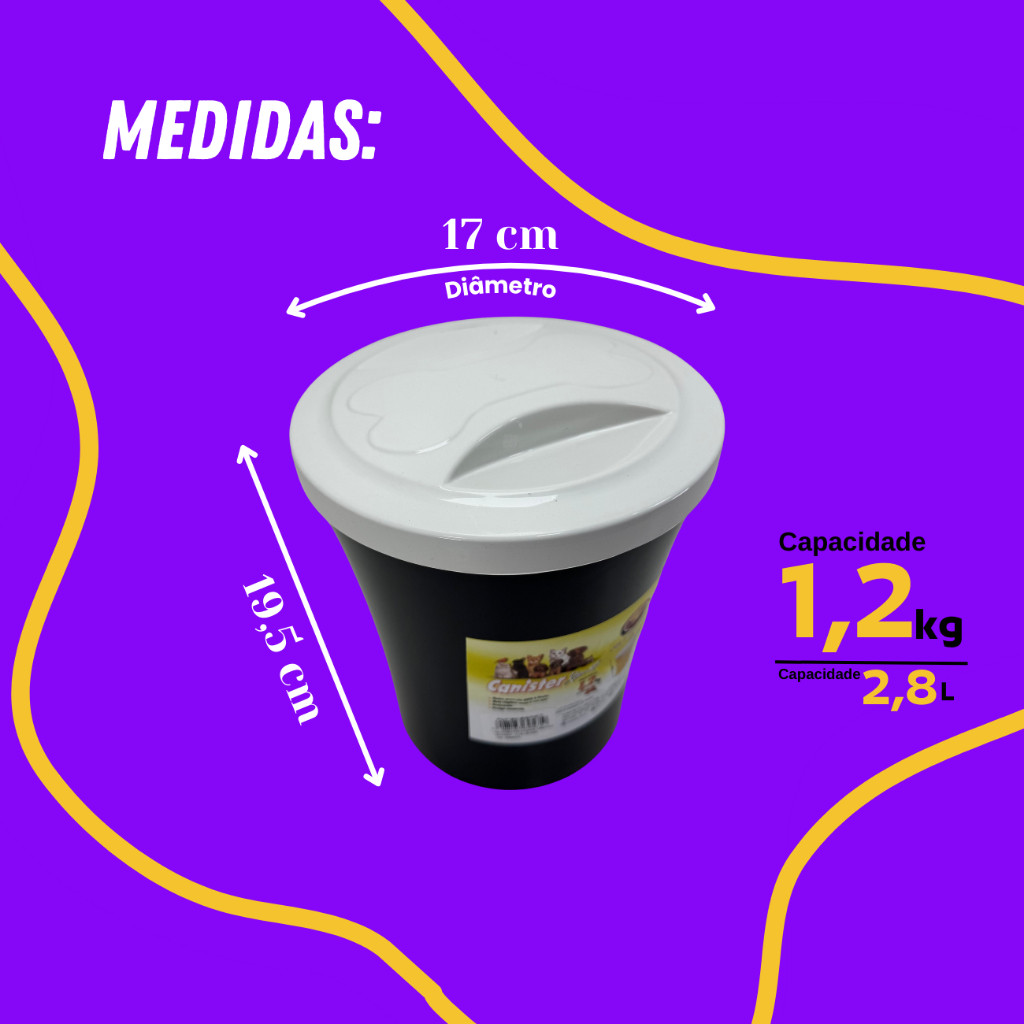 Canister Porta Ração 1,2kg Redondo Com Tampa Cor Preto - Furacão Pet